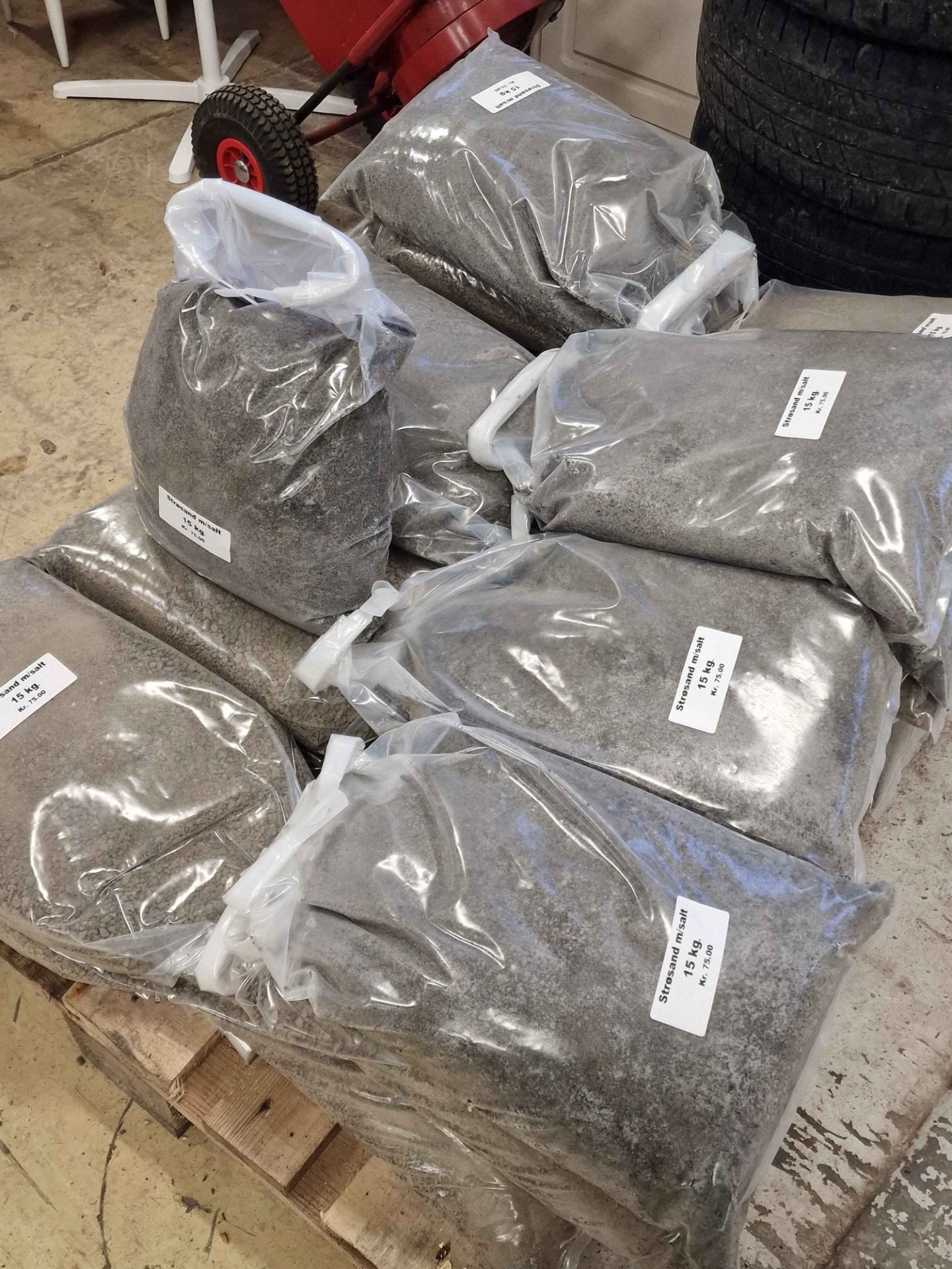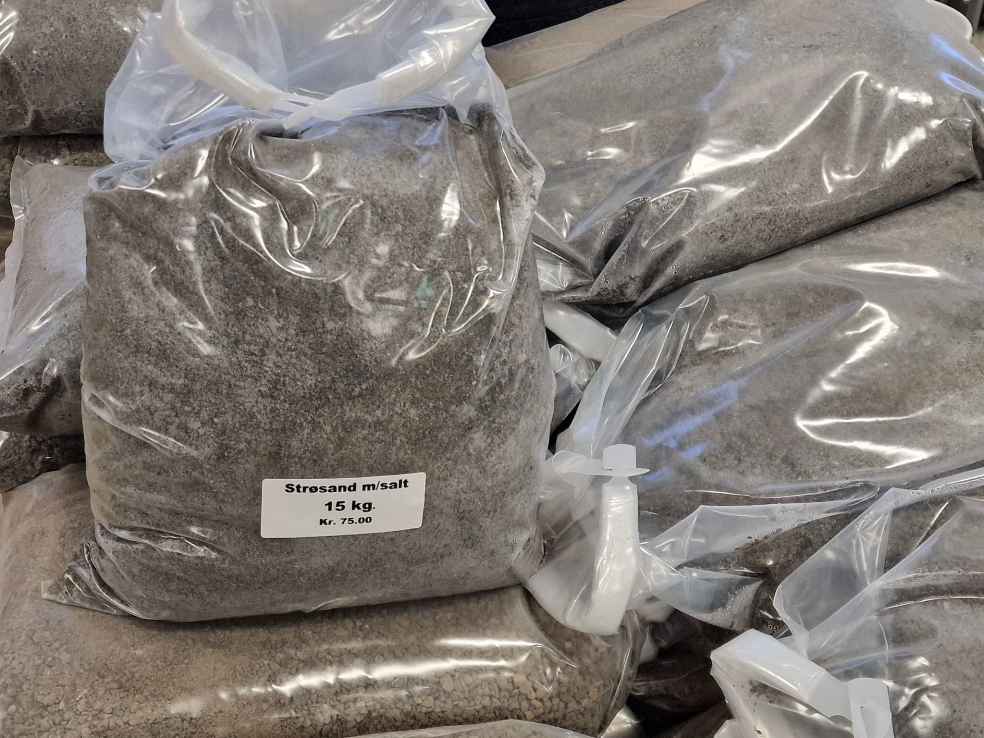Sandsekker har vi både i Burfjord & Badderen, selvbetjent etter stengetid. Vipps Merkes med Sandsekk.