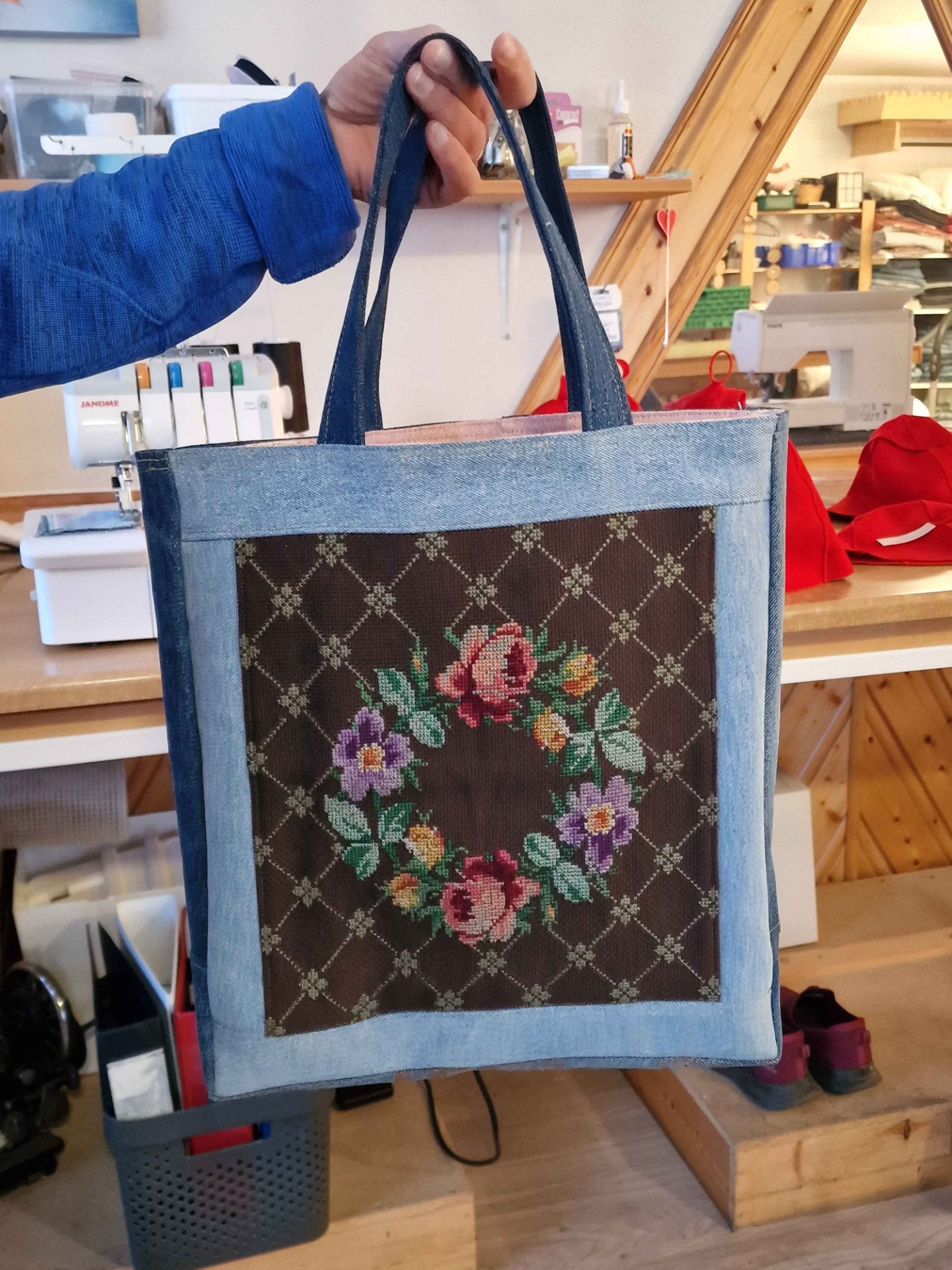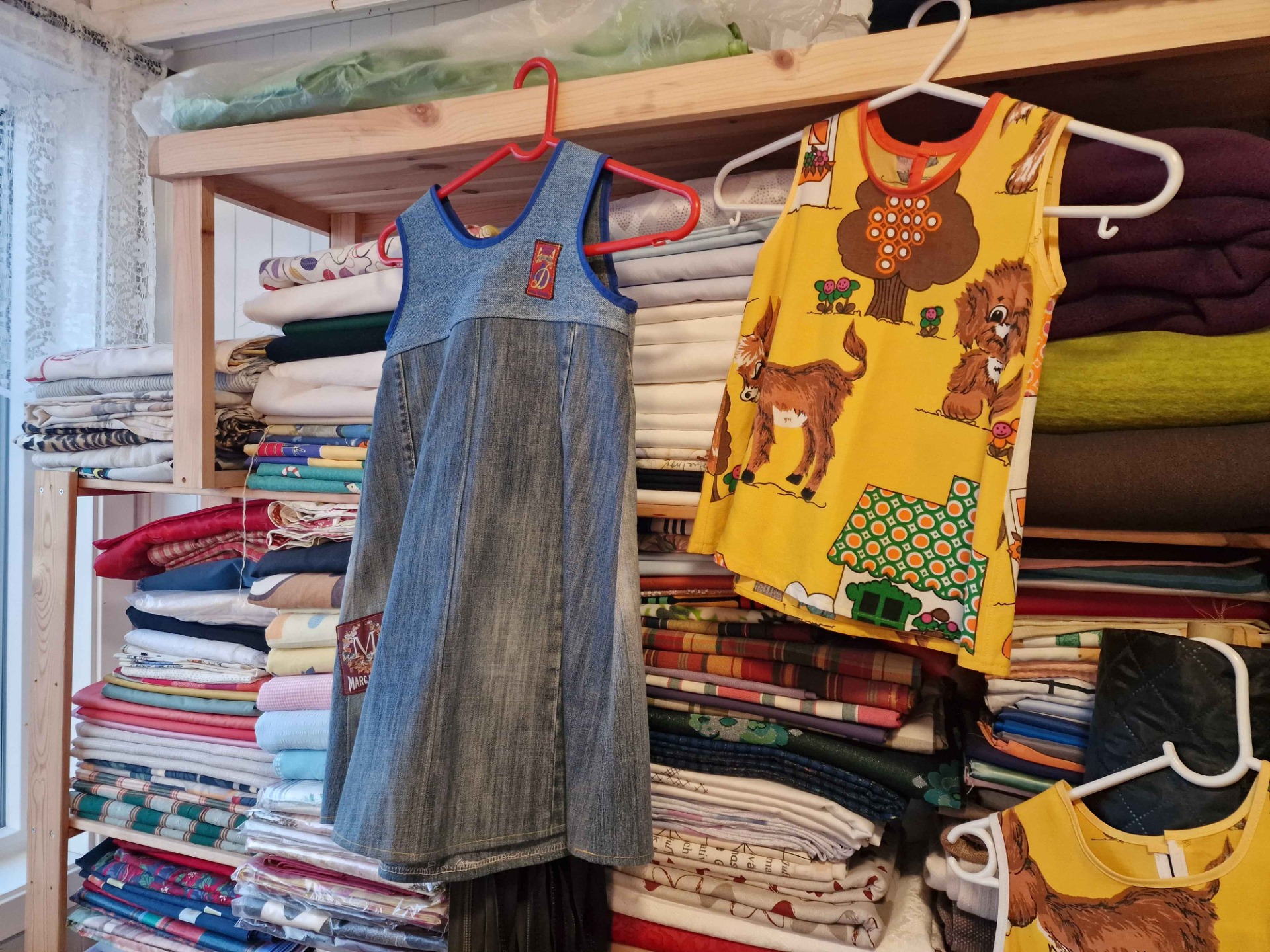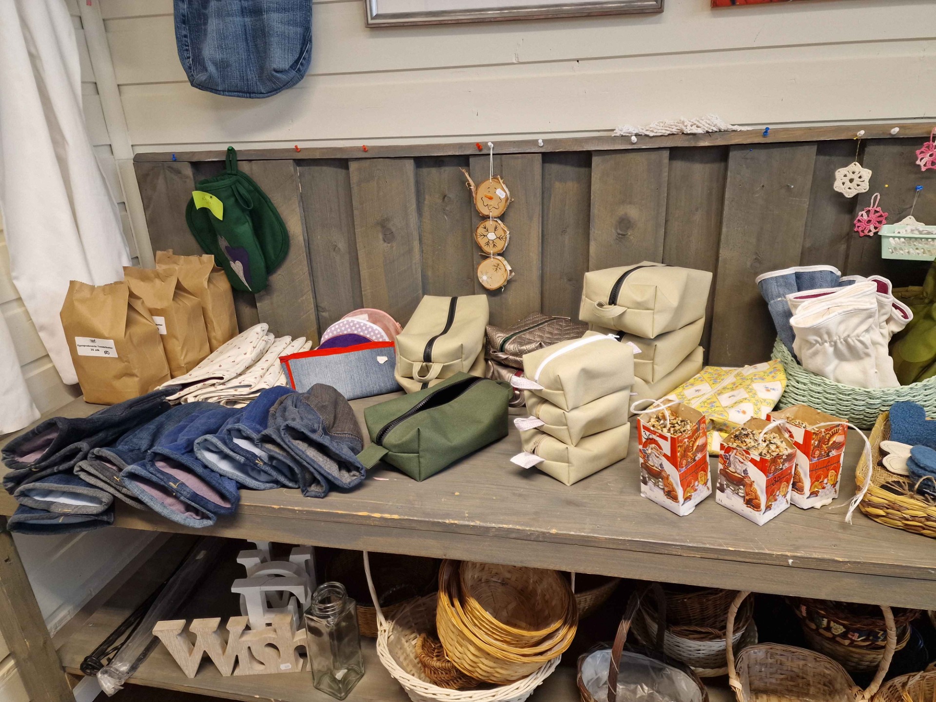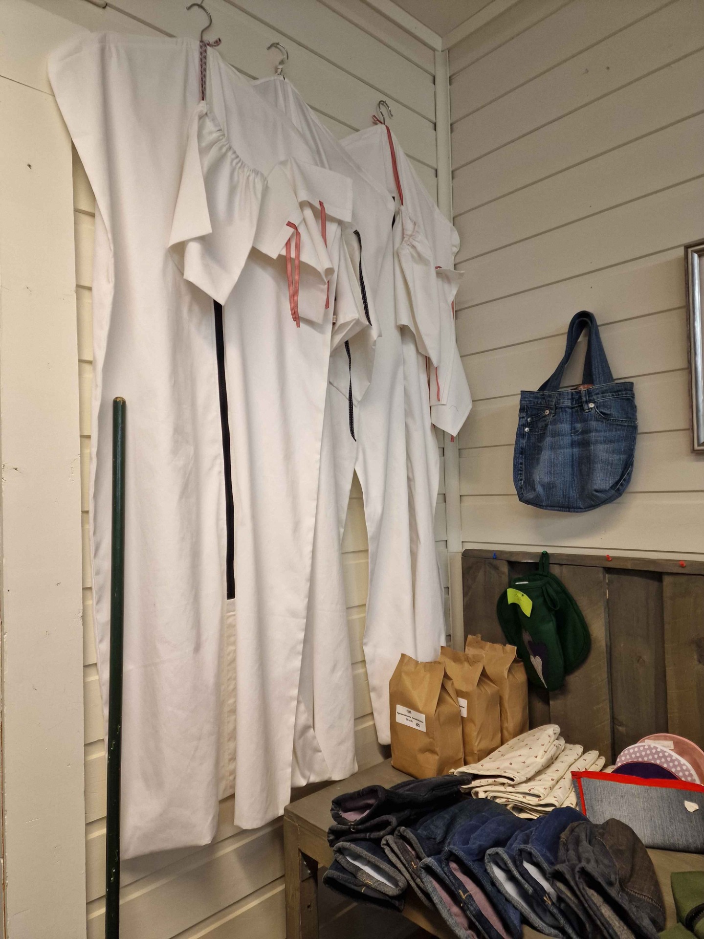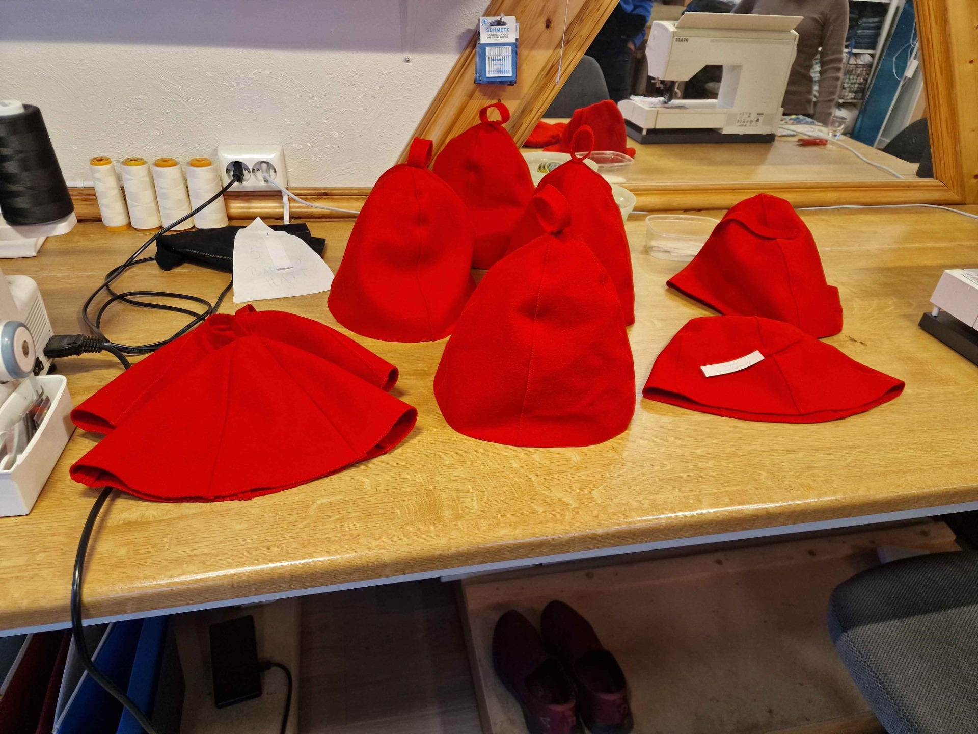 På systua vår produserer vi ulike produkter av tekstil. Vi syr bunadsposer, toalettmapper, grytekluter og badstuhatter.